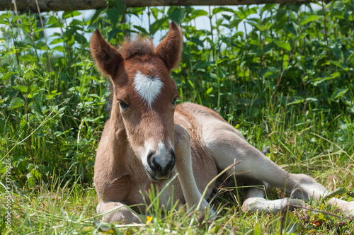 Fohlen Mit Herz Auf Der Stirn Liegt Im Grunen Gras Und Entspannt Sich Buy This Stock Photo And Explore Similar Images At Adobe Stock Adobe Stock