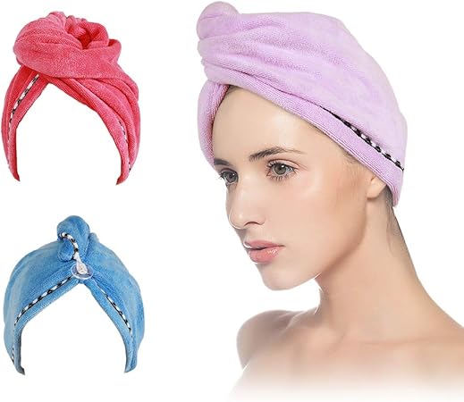 Shintop 3 Stuck Haar Handtuch Turban Mikrofaser Haarturban Baumwolle Mit Knopf Zum Haare Trocknen Fur Bad Spa Make Up Lila Rose Blau Amazon De Beauty