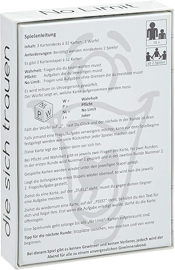 No Limit Fur Alle Die Sich Trauen Partyspiel Trinkspiel Gesellschaftsspiel Saufspiel Kartenspiel Ahnlich Wie Tat Wahrheit Oder Pflicht Lustiges Spiel Deutsche Version Amazon De Spielzeug