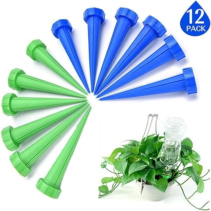 Kyerivs Bewasserungs Spike Selbst Bewasserungssystem Fur Pflanzen Pflanze Wassertropfen Fur Urlaub Flasche Kontrollsystem Blau Gruen 12 Stuck Amazon De Garten
