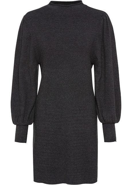 Figurformendes Kleid Mit Ballonarmeln In Strick Anthrazit Meliert