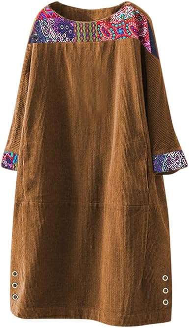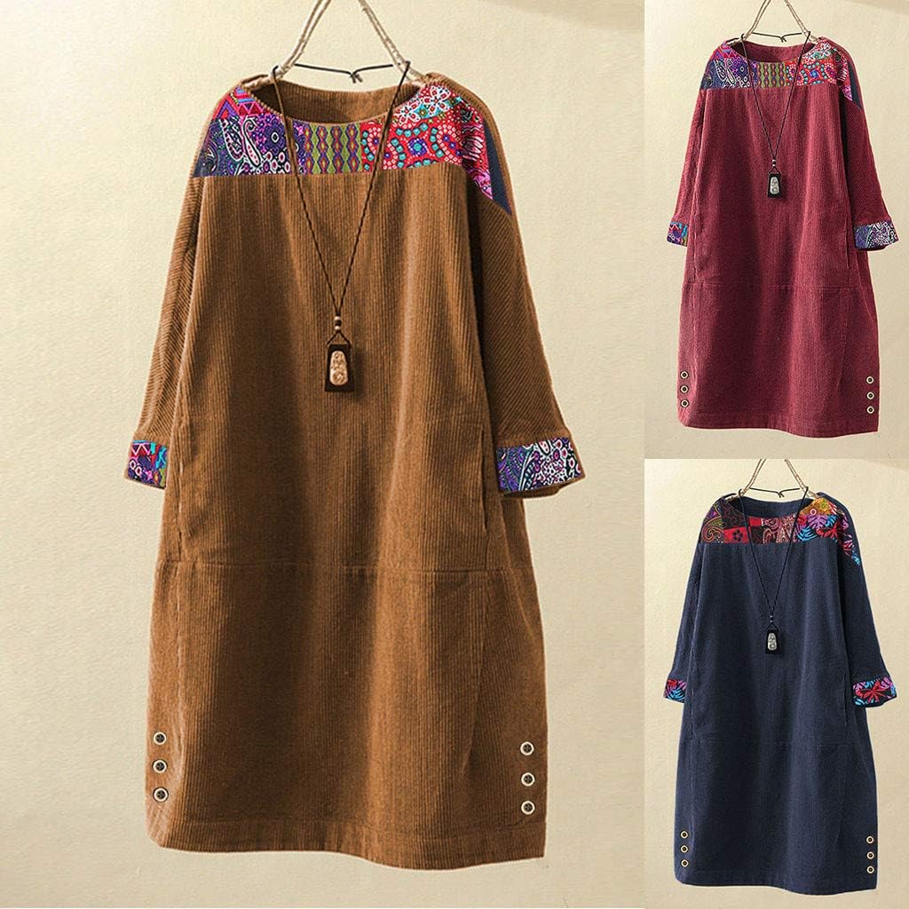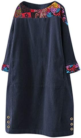 Lopily Winterkleid Damen Vintage Hippie Blumendruck Tunika Kleid Aus Cord Locker Strickkleider Damen Grosse Grossen Skaterkleid Oversize Fur Mollige Strickpullover Lose Pulloverkleid Freizeit Pullover