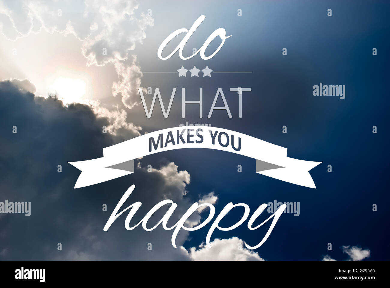 Tun Was Macht Dich Glucklich Zitat Textkonzept Geschrieben Am Blauen Himmel Stockfotografie Alamy