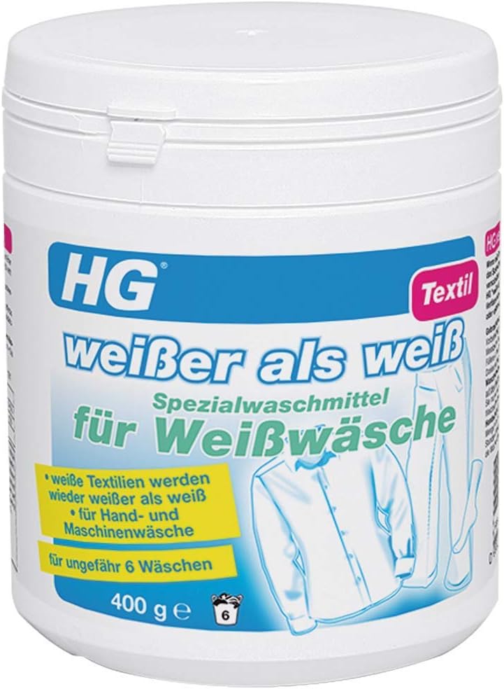 Hg Weisser Als Weiss Spezialwaschmittel Fur Weisswasche 400 Gr Ist Ein Waschmittel Fur Weisse Wasche Das Eine Verfarbung Ihrer Weisswasche Verhindert Oder Ruckgangig Macht Amazon De Drogerie Korperpflege