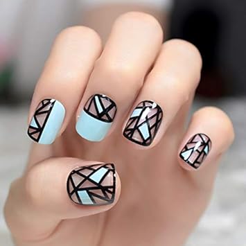 Plzjmm Kunstliche Nagel Matte Weisse Linie Lange Nagel Schwarzes Quadrat Verflochten Gefalschte Nagel Matte Charme Kunstliche Nagelspitzen Amazon De Beauty