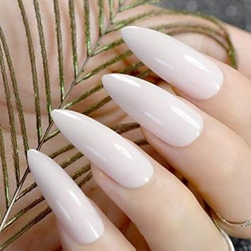 Plzjmm Kunstliche Nagel Weisse Spitzen Kunstliche Nagel Extra Lange Stiletto Kunstnagel Naturlich Lackierte Lange Party Nagel 24 Anzahl Amazon De Beauty