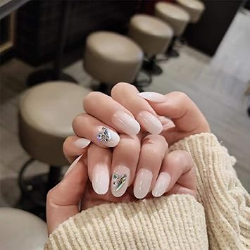 Kunstliche Nagel Kristall Nagel Voll Gestaltete Strass Gefalschte Nagel Lange Naturliche Weisse Designer Nail Art Tipps Amazon De Kuche Haushalt