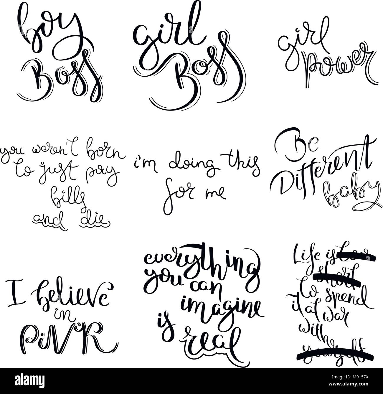 Sammlung Von Hand Geschrieben Kalligraphie Zitate Motivation Fur Das Leben Und Gluck Fur Postkarte Poster Drucke Karten Grafik Design Stock Vektorgrafik Alamy