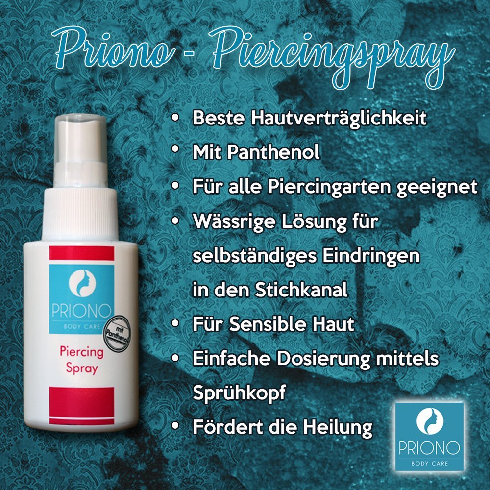 Priono Piercing Spray 75 Ml Piercing Care Antibacterial Cleaning After Care Wound Cleanser Disinfectant Aqueous Solution Amazon In Jewellery