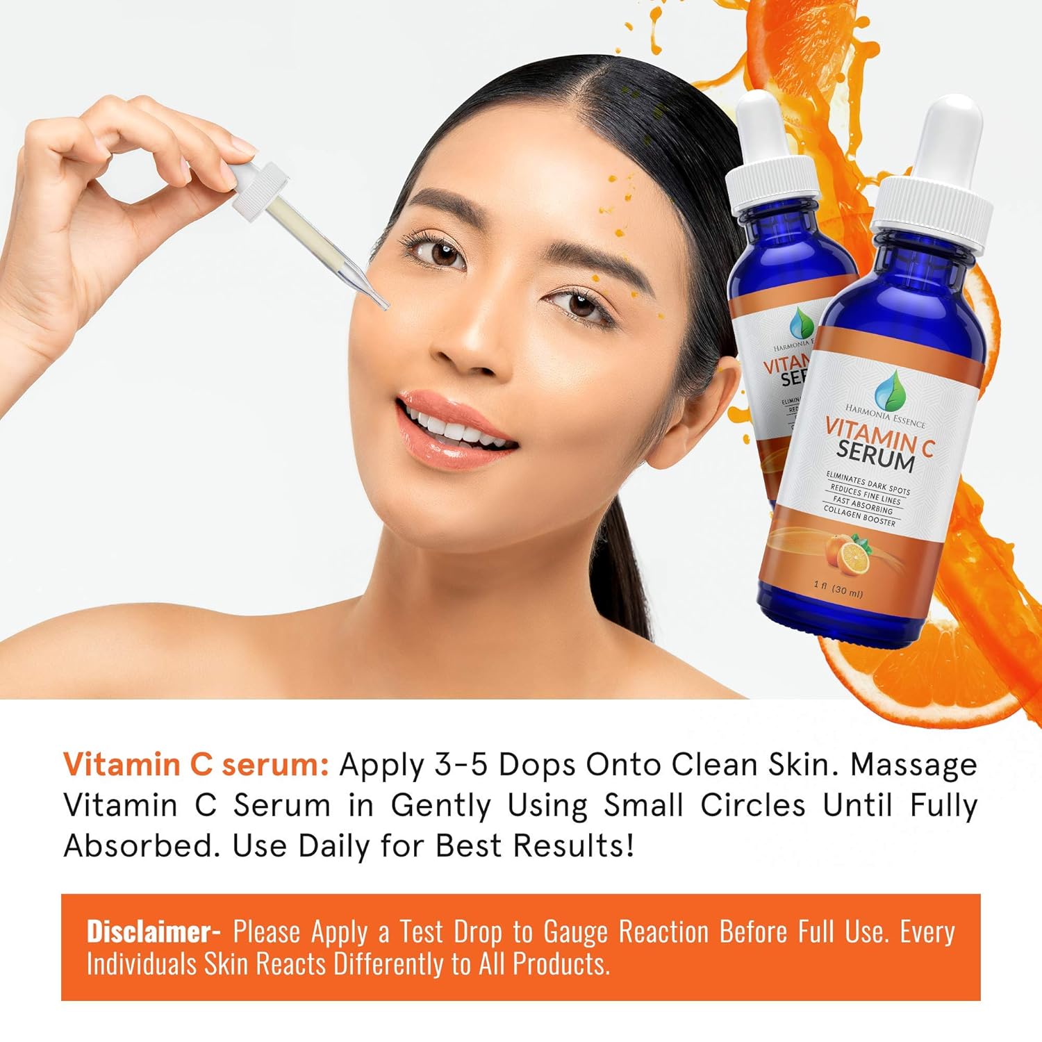 Amazon Com Harmonia Essence Vitamin C Serum Natural Face And Skincare Solution Anti Aging Formula Tightens Pores Reduces Age Spots Sun Damage Scars Fine Lines Facial Wrinkles Dark Circles And Acne