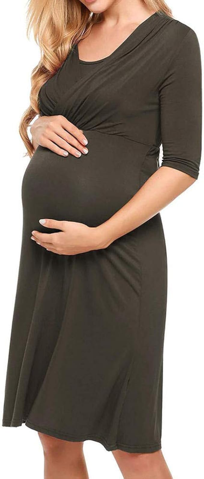 Dfebv Tops Fur Schwangere Schwangerschaftskleid Sommer Frauen Mutterschaft Pflege Sieben Viertel Armel V Ausschnitt Kleid Zum Stillen Amazon De Bekleidung