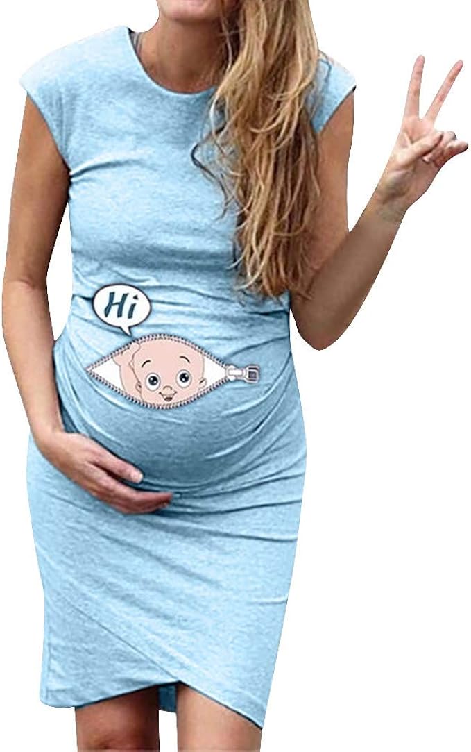 Juliyues Umstandskleid Damen Cartoon Print Schwangerschaft Mutterschaft Kleid Frauen Sommer Maternity Kleider Stillkleid Stretchkleid Umstandskleidung Umstandskleidung Damen