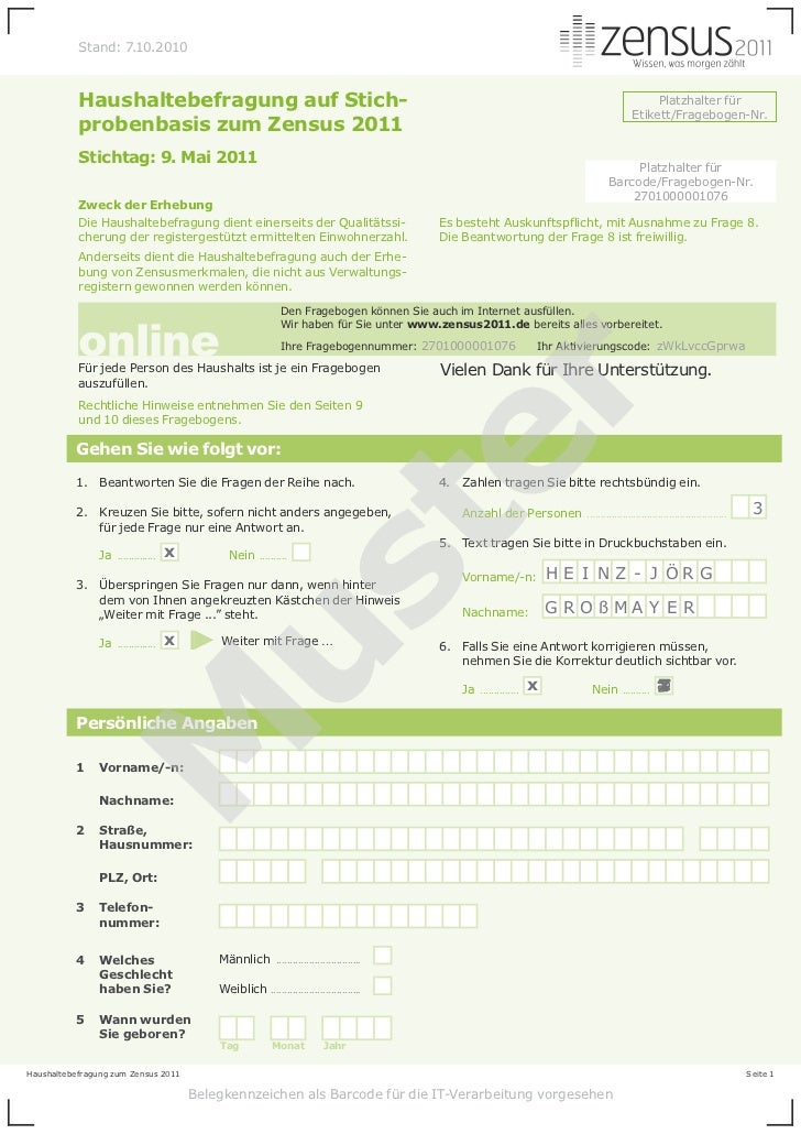 Zensus 21 Musterfragebogen Zur Pilotstudie
