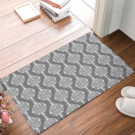 Grau Und Weiss Classic Flower Pattern Turmatten Kuche Badewanne Eingang Teppich Matte Hallenbad Bad Einrichtung Fussmatten Rutschfeste Amazon De Kuche Haushalt