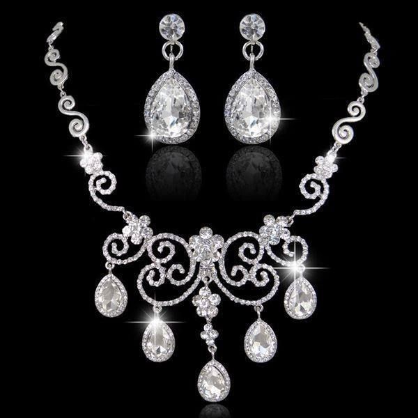 Echtschmuck Kette Ohrringe Swarovski Elements Set Water Tear Drop Weissgold Pl Uhren Schmuck Expertdigital Net