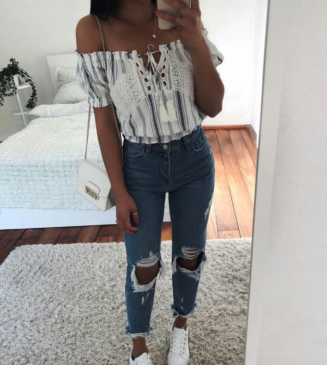 How To Wear Distressed Denim Ripped Jeans Fashion Trendy Outfits Fashion Outfits