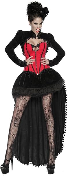 Yourdesignerz Sexy Hexen Kostum Outfit Damen Schwarz Rot Xs M Verkleidung Sexy Kleid Corsagen Weste Kragen 2 Armel Amazon De Bekleidung