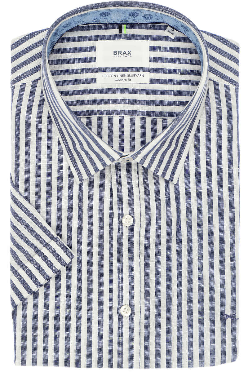 Hochwertiges Brax Modern Fit Kurzarmhemd In Der Farbe Blau Weiss Gestreift Der Armeltyp Ist Kurzarm Das Hemd Ist Pflegeleicht Und Ist Ohne Brusttasche Der Stoff Ist Ein Feines Leinen Gewebe Aus 56 Baumwolle