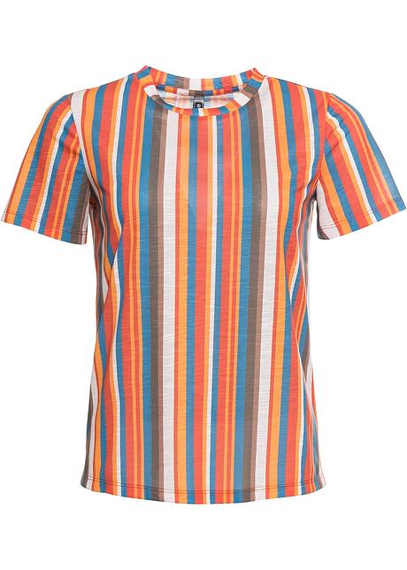 Gestreiftes Shirt Mit Kurzen Armeln Orange Blau Weiss Oliv Gestreift
