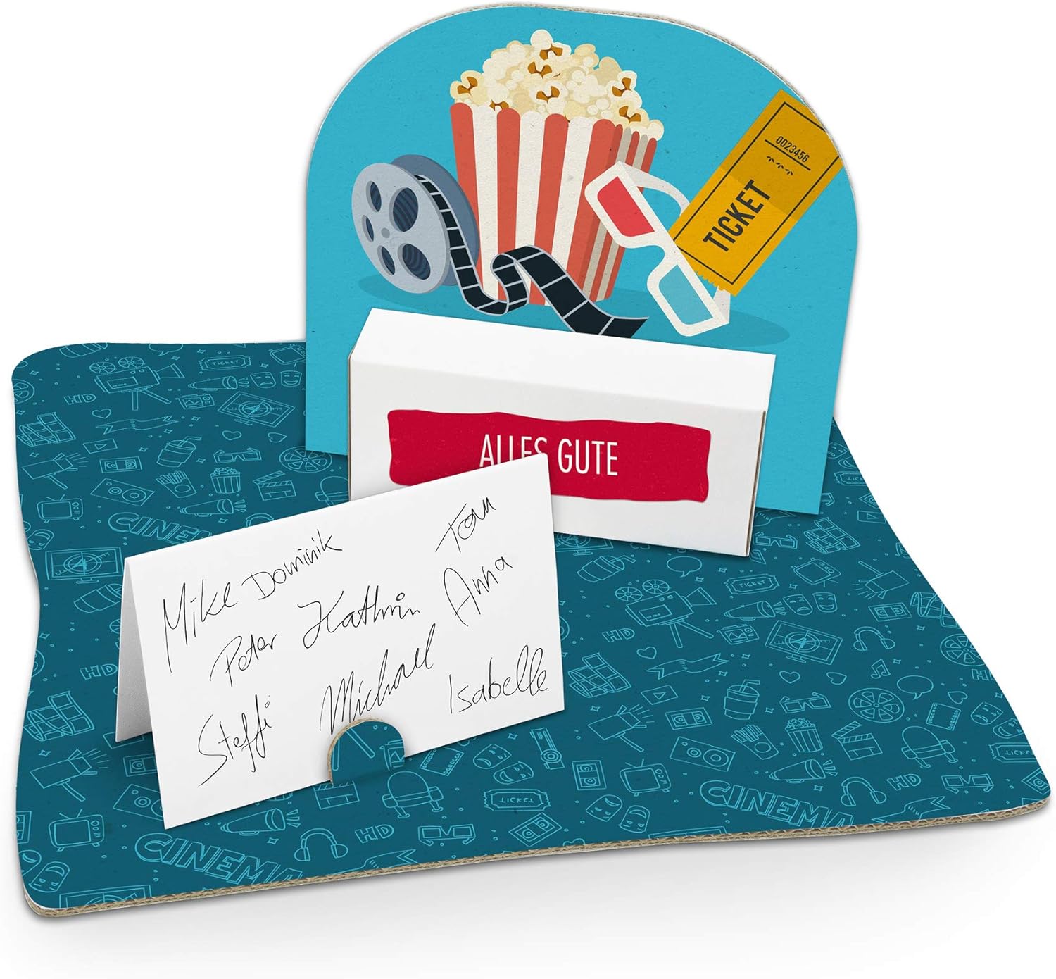 Geschenkkarte Und Stickerbogen Itenga Kinokarte Popcorn Geldgeschenk Gastgeschenk Verpackung Gutschein Mit Bodenplatte