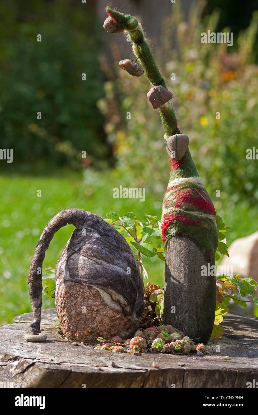 Filz Steinerne Trolle Die Als Gartendekoration Zwei Natursteine Ausgestattet Mit Kappen Der Verfilzt Wolle Stehen Nebeneinander Auf Einem Baum Haken Deutschland Stockfotografie Alamy