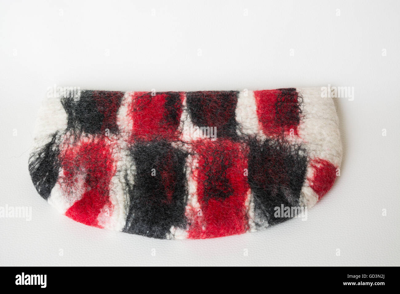 Wolle Verfilzt Und Handtasche Auf Weissem Hintergrund Stockfotografie Alamy