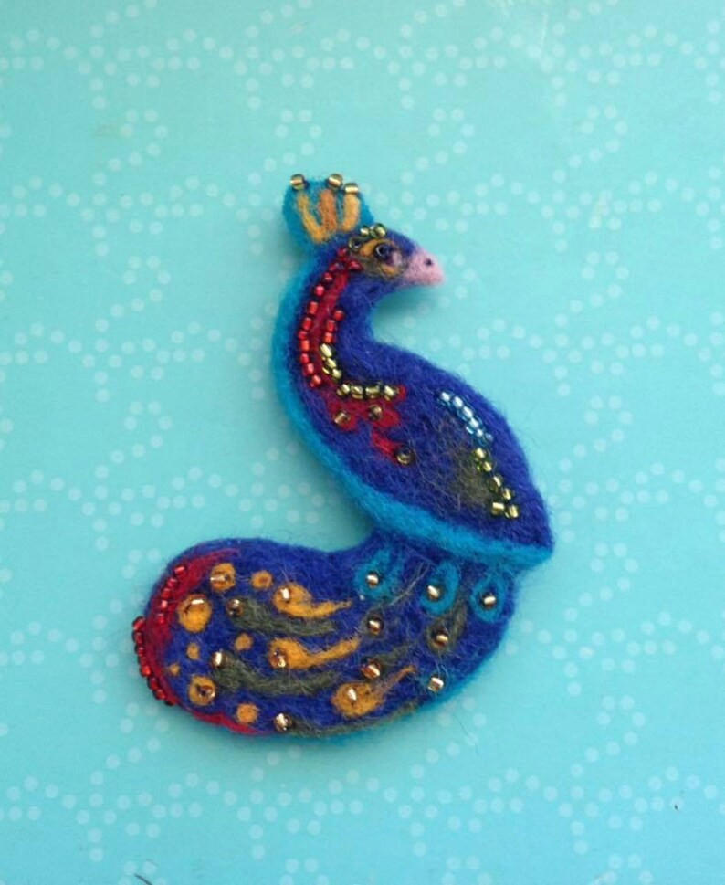 Pfau Wolle Verfilzt Wolle Naturliche Brosche Blaue Brosche Etsy