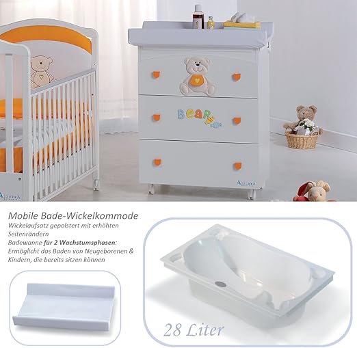 Azzurra Design Nursery Furniture Set With Child S Cot And Baby Changing Unit Orange Bear Design Amazon Co Uk Baby