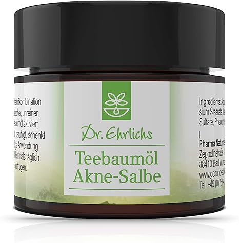 Dr Ehrlichs Teebaumol Akne Salbe Gegen Pickel Mitesser Und Unreine Haut Mit Der Naturlichen Antiseptischen Wirkung Des Teebaumes Amazon De Drogerie Korperpflege
