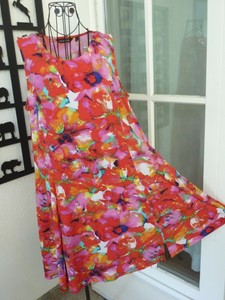 Nina Leonard Kleid Gr 42 44 Dehnbar Floral Farbenfroh Sommerkleid Ebay