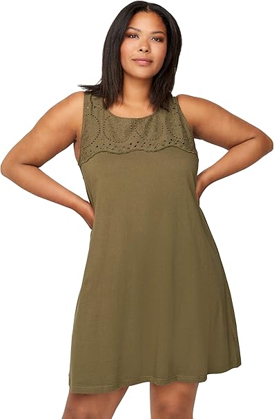 Zizzi Damen Grosse Grossen Armelloses Baumwoll Kleid Mit Rundhals Gr 42 56 Amazon De Bekleidung