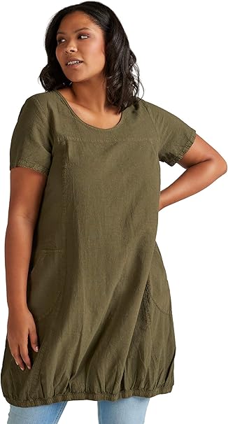Zizzi Damen Grosse Grossen Kurzarm Kleid Aus Baumwolle Gr 42 56 Amazon De Bekleidung