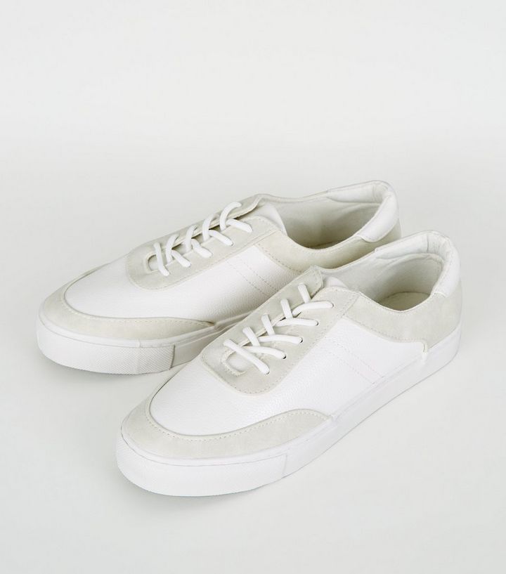 Weisse Turnschuhe In Leder Und Wildleder Optik New Look