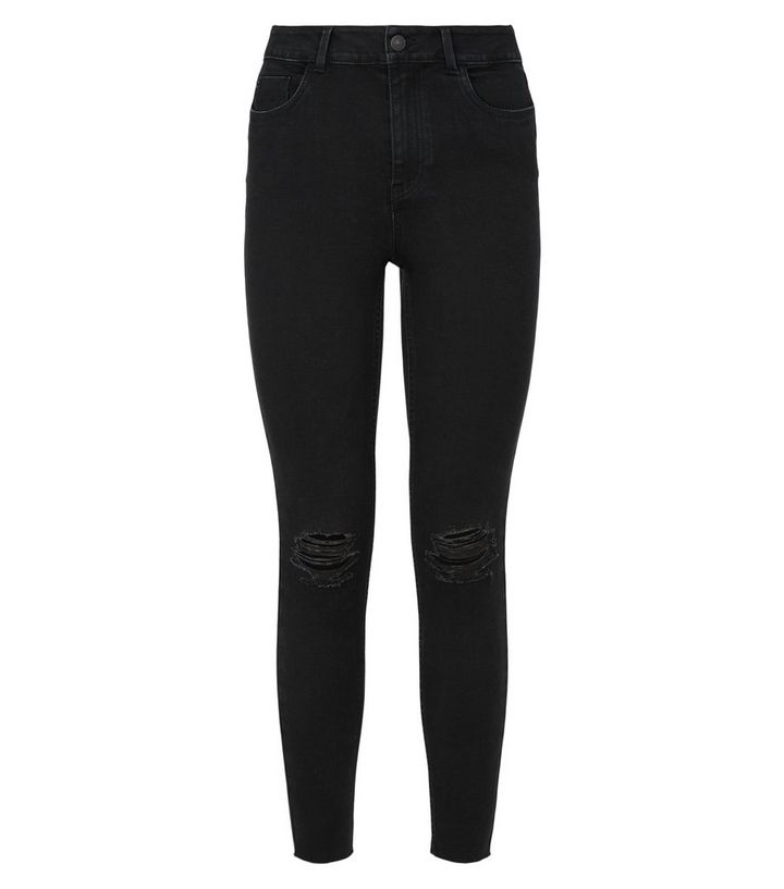 Petite Kurze Zerrissene Lift Shape Skinny Jeans In Schwarz New Look