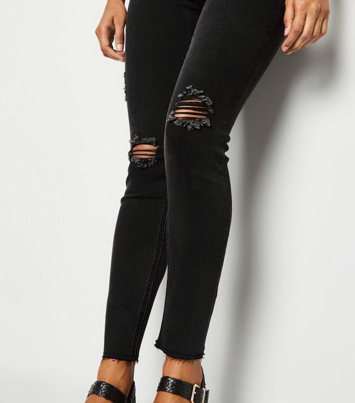 Petite Schwarze Zerrissene Skinny Jeans New Look