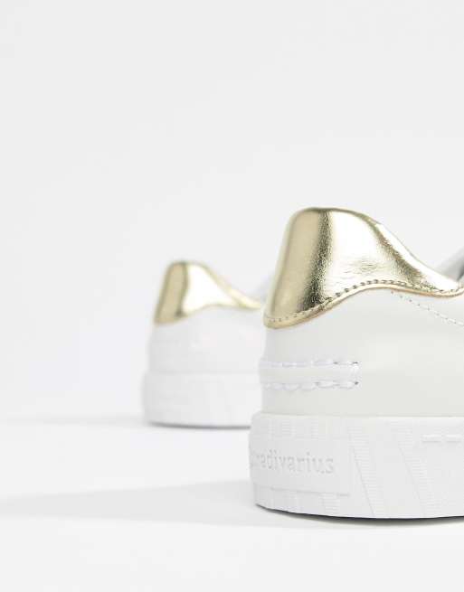 Asos Weisse Sneaker Mit Fersen Schnurband Und Goldakzenten Asos