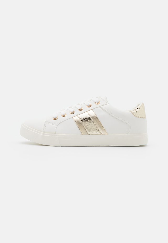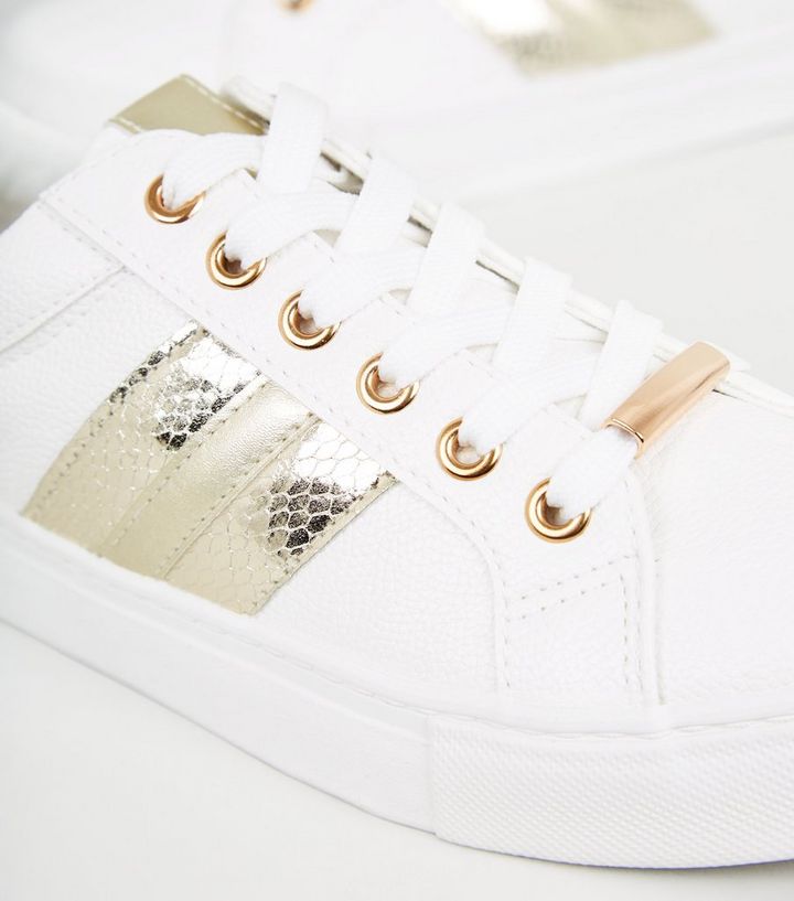 Weisse Turnschuhe In Leder Optik Mit Metallic Streifen New Look