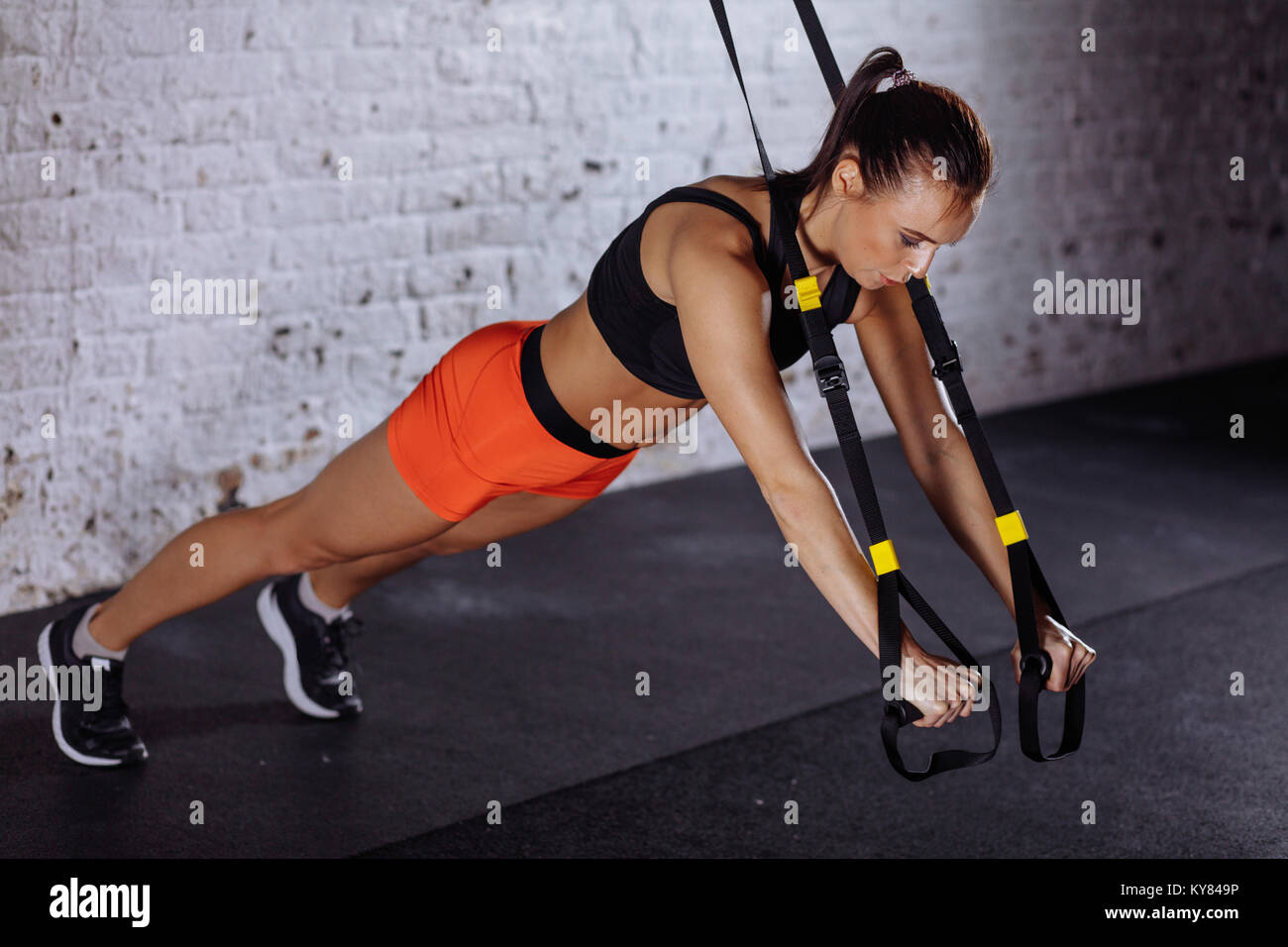 Fitness Frau Training Mit Trx Fitness Bander Stockfotografie Alamy