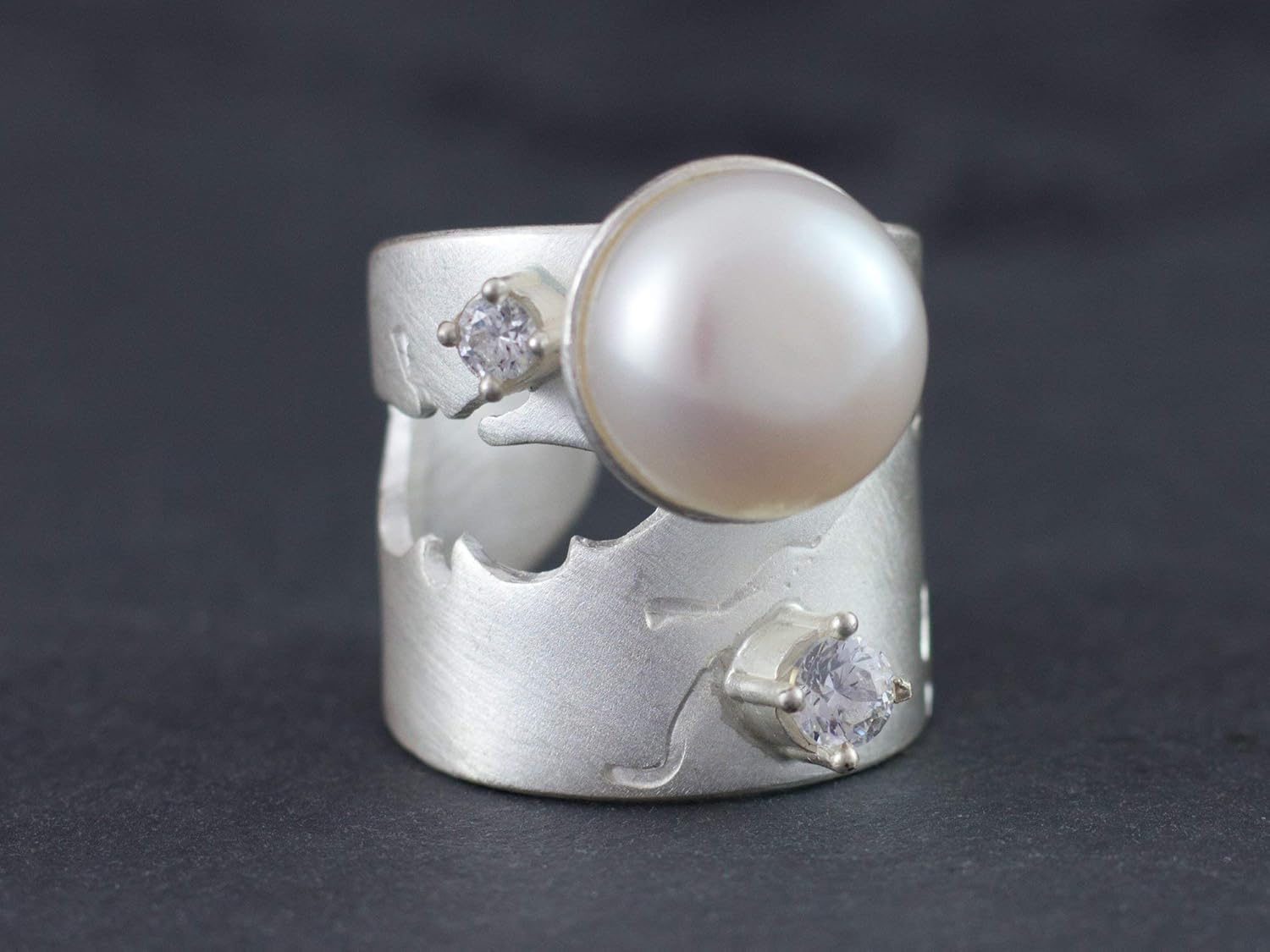Silber Ring Perle Ausgefallene Goldschmiede Ringe Verlobungsring Handgemachter Echt Schmuck