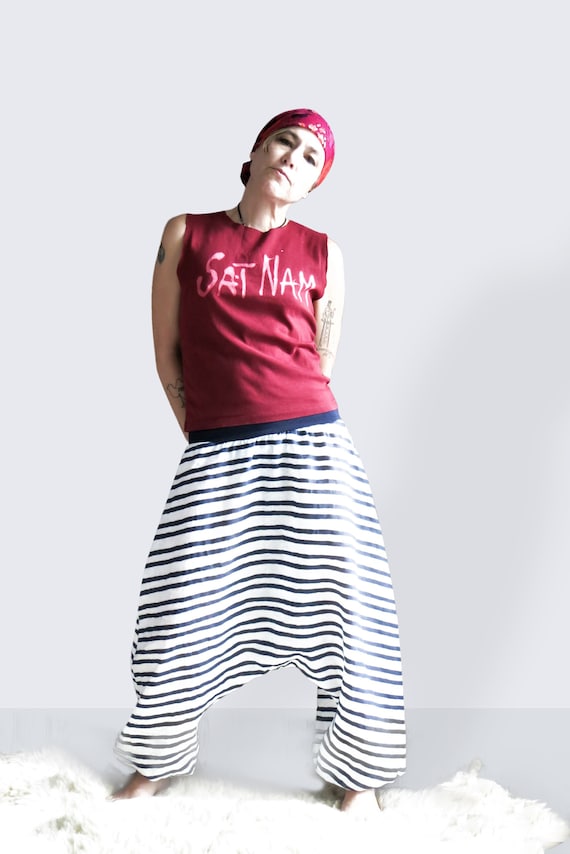 Weisse Leinenhose Gestreift Frauen Haremshose Leinen Pumphose Etsy