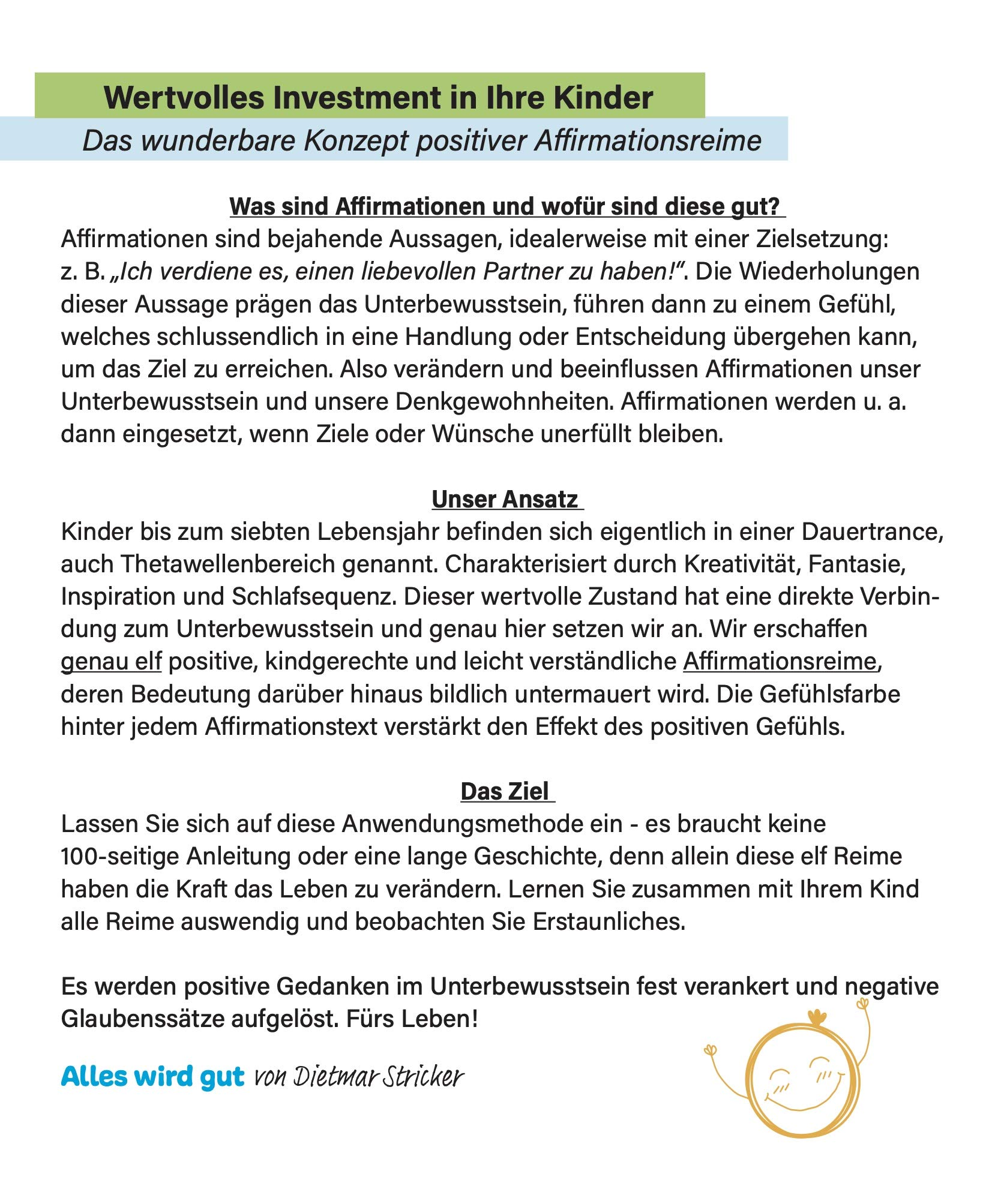 Alles Wird Gut Wie Kinder Unbewusst Mehr Selbstvertrauen Und Selbstliebe Entwickeln Konnen Affirmationsreime Fur Kinder 18 Monate Amazon De Dietmar Stricker Dietmar Stricker Ratti J M Zernak Sciuto Bucher
