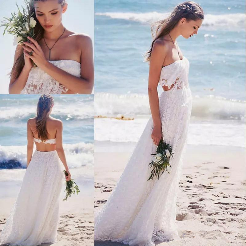 Weisse Lange Sommerkleider Hochzeitskleid Spitze Chiffon Hochzeitskleid Strandhochzeitskleid