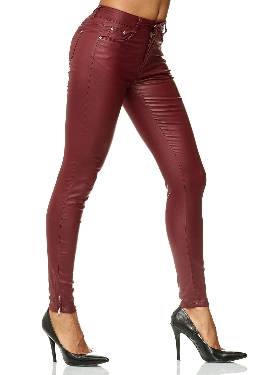 Kleidung Accessoires Damen Leder Hose Biker Pants Treggings Rohre Kunstlederhose Skinny Lederoptik Winebox Gr
