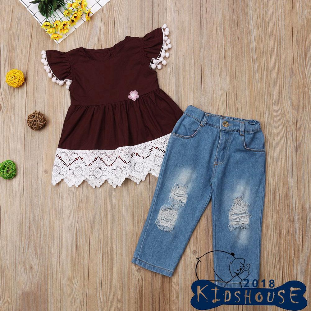 Baby Toddler Clothing Toddler Kids Girls Silk Lace Dress Ripped Jeans Denim Outfits Set Clothes 1 6t Clothing Shoes Accessories Fmj Br