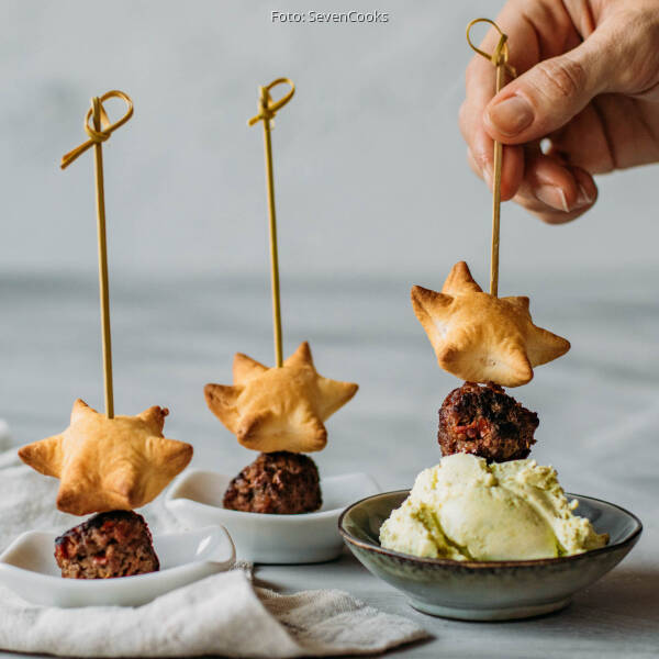 Weihnachtliches Fingerfood Hackballchenspiesse Mit Blatterteigsternen Zum Dippen Knabbern Naschen Fingerfood Weihnachten Fingerfood Lebensmittel Essen