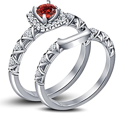 Vorra Fashion Teure Jewelry Rundschliff 925 Sterling Silber Granat Rot Damen Verlobungsring Set Amazon De Schmuck