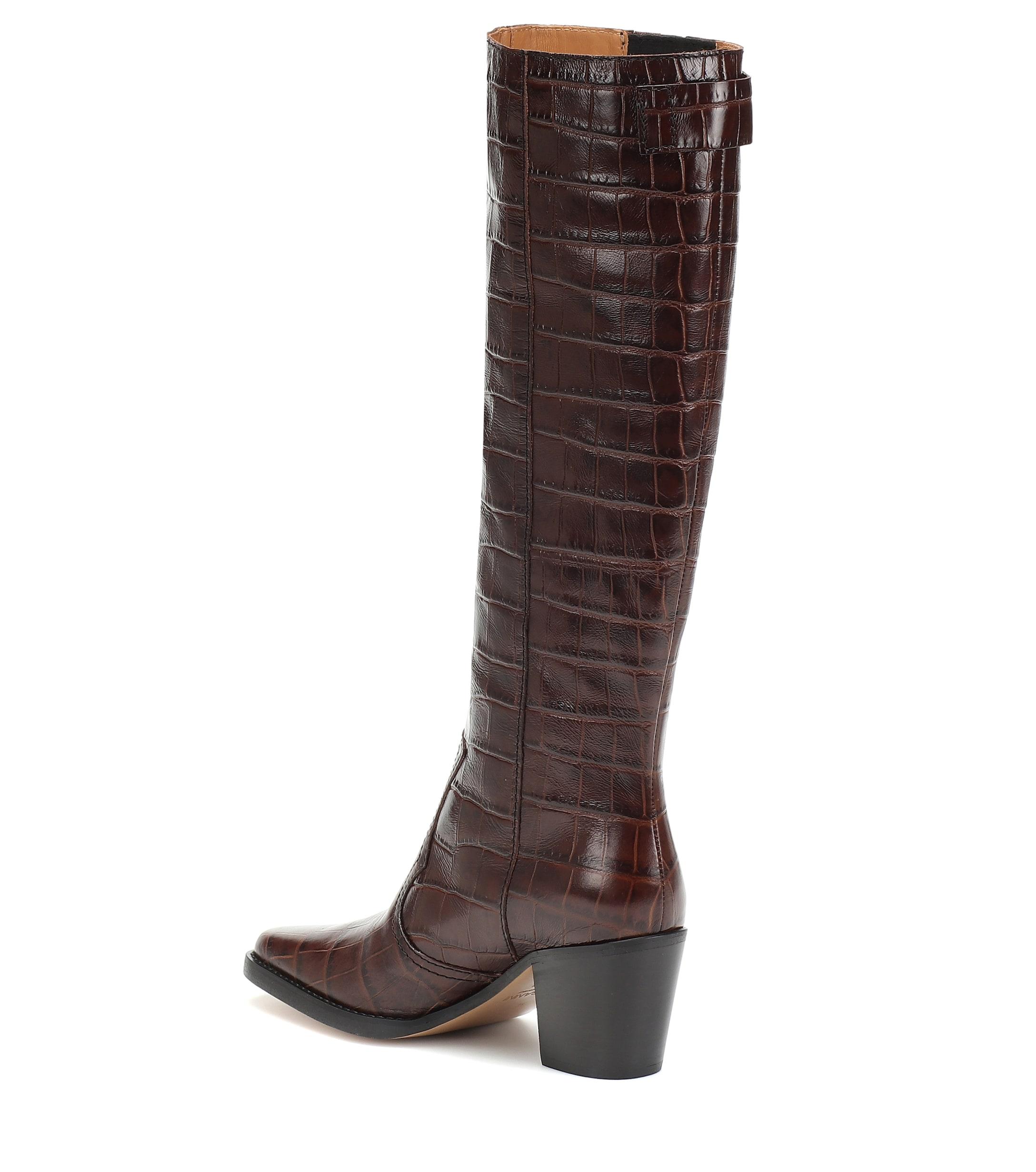 Ganni Leather Western Knee High Boots In Brown Save 56 Lyst