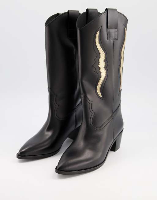 Depp Kniehohe Western Stiefel Aus Schwarzem Leder Evesham Nj