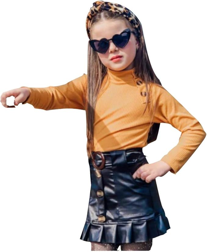 Yaohxu Kleinkind Baby Kinder Madchen 2 Stucke Kleidung Outfits Herz Solide Langarm T Shirt Tops Kleiner Lederrock Mit Ruschen Overall Outfit Set Amazon De Bekleidung