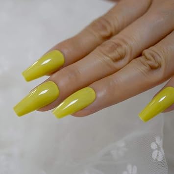 Qulin Falsche Nagel Glanzende Gelbe Ballerina Sommernagel Schone Form Sich Verjungende Sarg Falsche Nagel Volle Abdeckung Kunstliche Manikure Amazon De Beauty